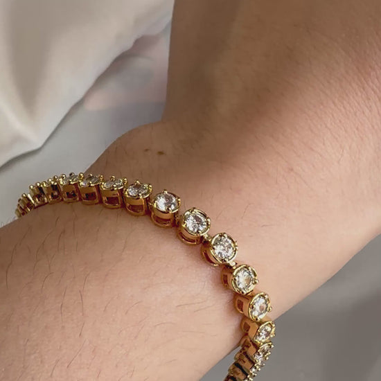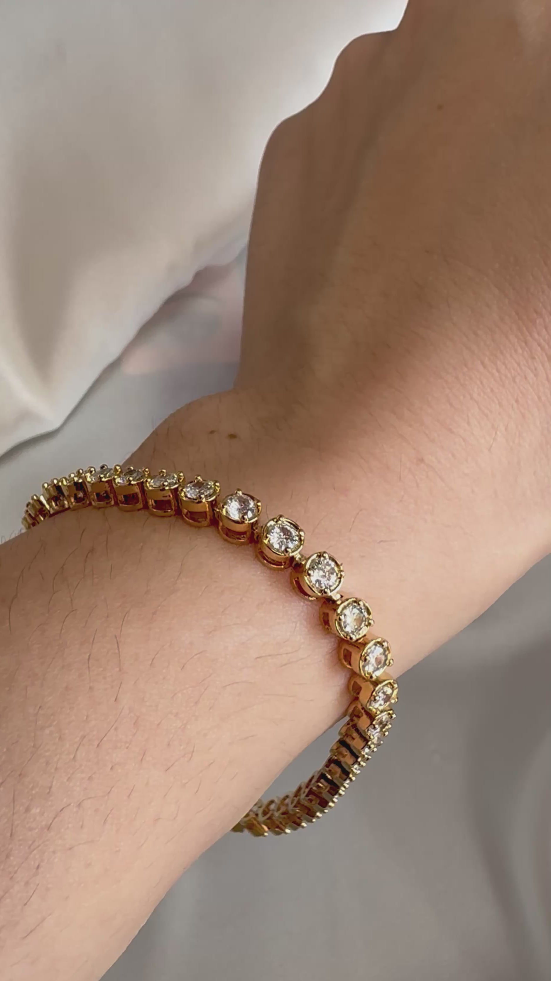 "Cette bracelet élégante, ornée de brillants scintillants, est délicatement plaquée en or, offrant un éclat subtil et raffiné. Son design moderne et chic se marie parfaitement avec toutes les occasions, ajoutant une touche de luxe et de sophistication à votre poignet."